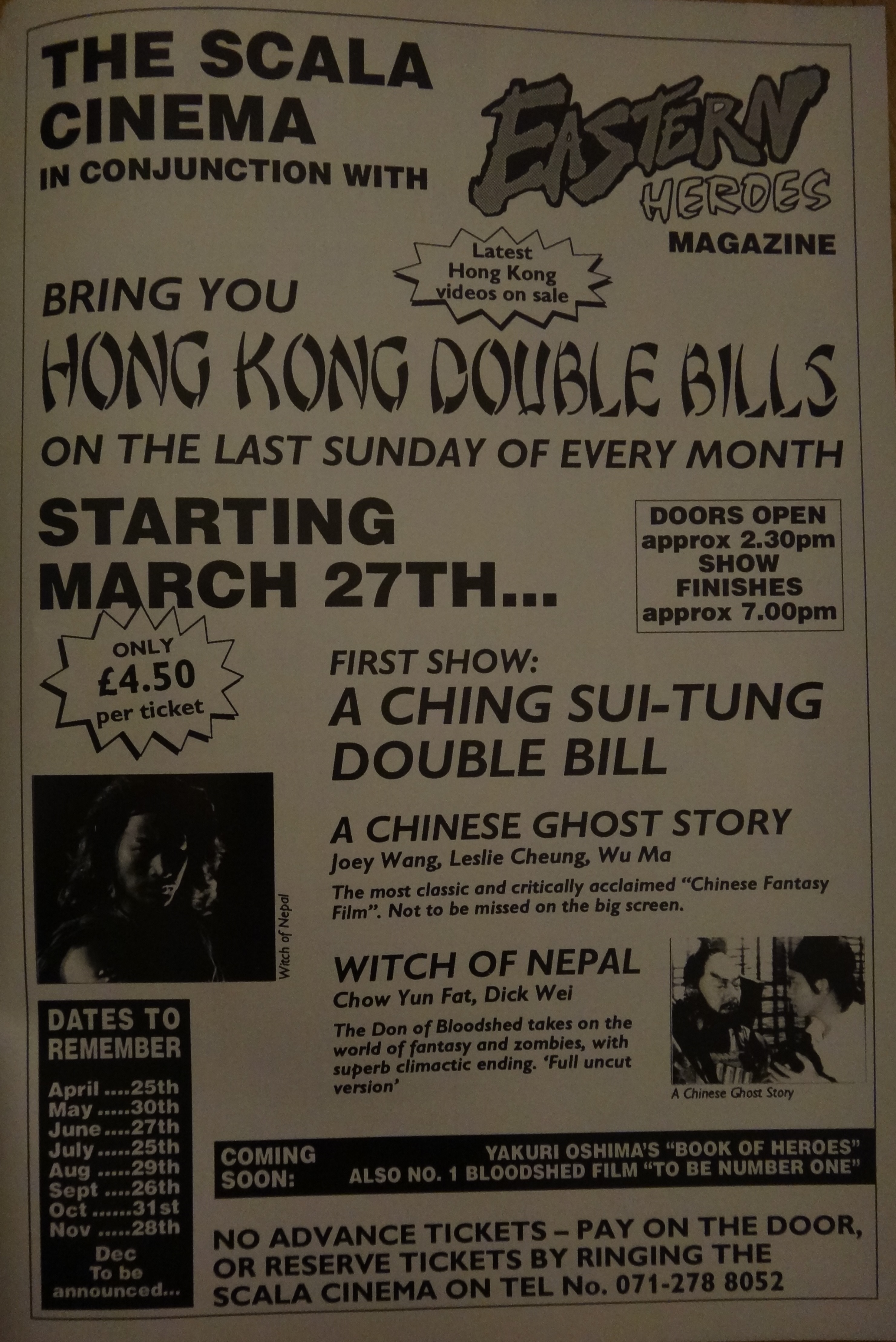 Of course it wouldn’t be a London cinema article without a mention of the beloved Scala Cinema, so here’s a look at what was playing that week: